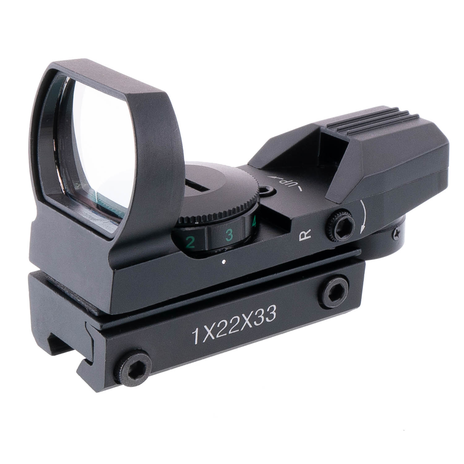 Весь корпус и кронштейн выполнены из алюминия, благодаря этому коллиматорный прицел Target Optic 1-22-33 имеет малый вес.